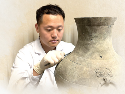 初中毕业后,赵明辉在电视上看到了《我在故宫修文物》的纪录片,被片中文物修复师的工作深深吸引,他深受触动,毅然选择了“家人说太冷门”的文物保护与修复专业。赵明辉摩挲着铜罍腹部的蟠螭纹,若有所思:“我常想,古代的工匠真的很了不起,用那么简陋的工具就可以做出这么伟大的作品。而我有幸将它们还原,也有一脉相承的匠心。”