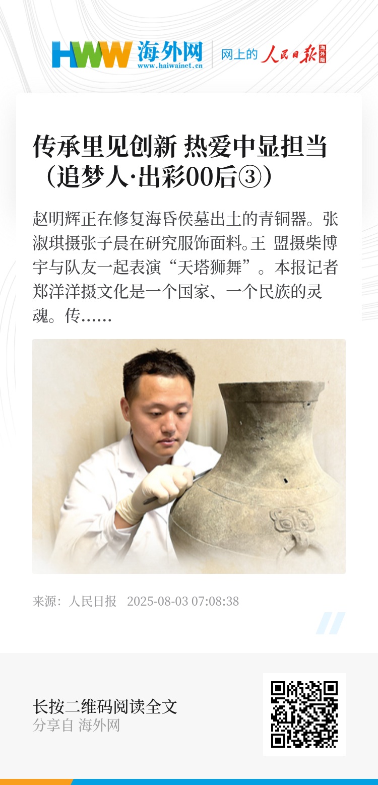 近年来,很多00后积极投身于传承与弘扬中华优秀传统文化的事业中,他们凭借对传统文化的创新理解和对新兴技术的敏锐感知,以及自信开放的胸怀、认真钻研的态度,让中华优秀传统文化焕发生机,历久弥新。
