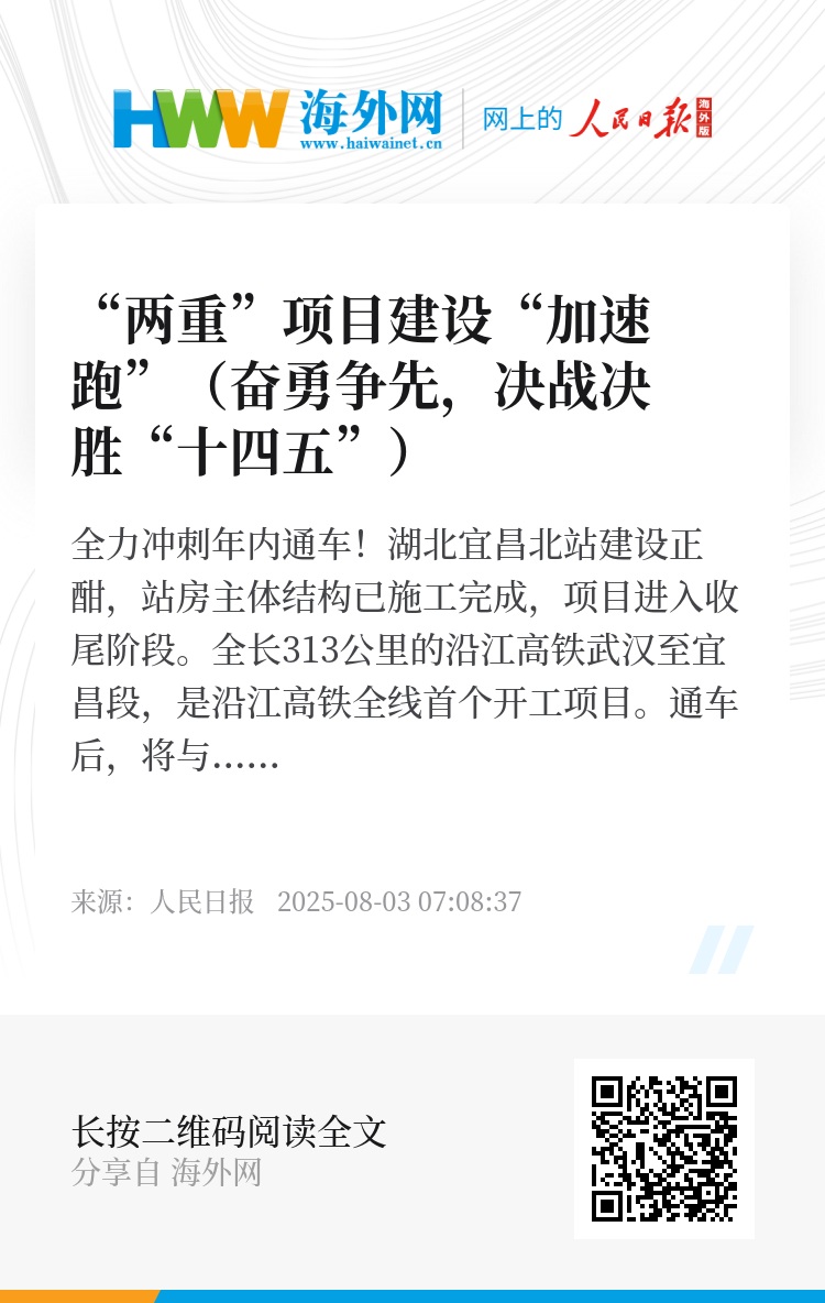 全力冲刺年内通车!湖北宜昌北站建设正酣,站房主体结构已施工完成,项目进入收尾阶段。全长313公里的沿江高铁武汉至宜昌段,是沿江高铁全线首个开工项目。通车后,将与汉宜铁路等一道,在湖北省内形成“武汉往返武汉”高铁环线,助力武汉、襄阳、宜昌三地实现1小时互通。