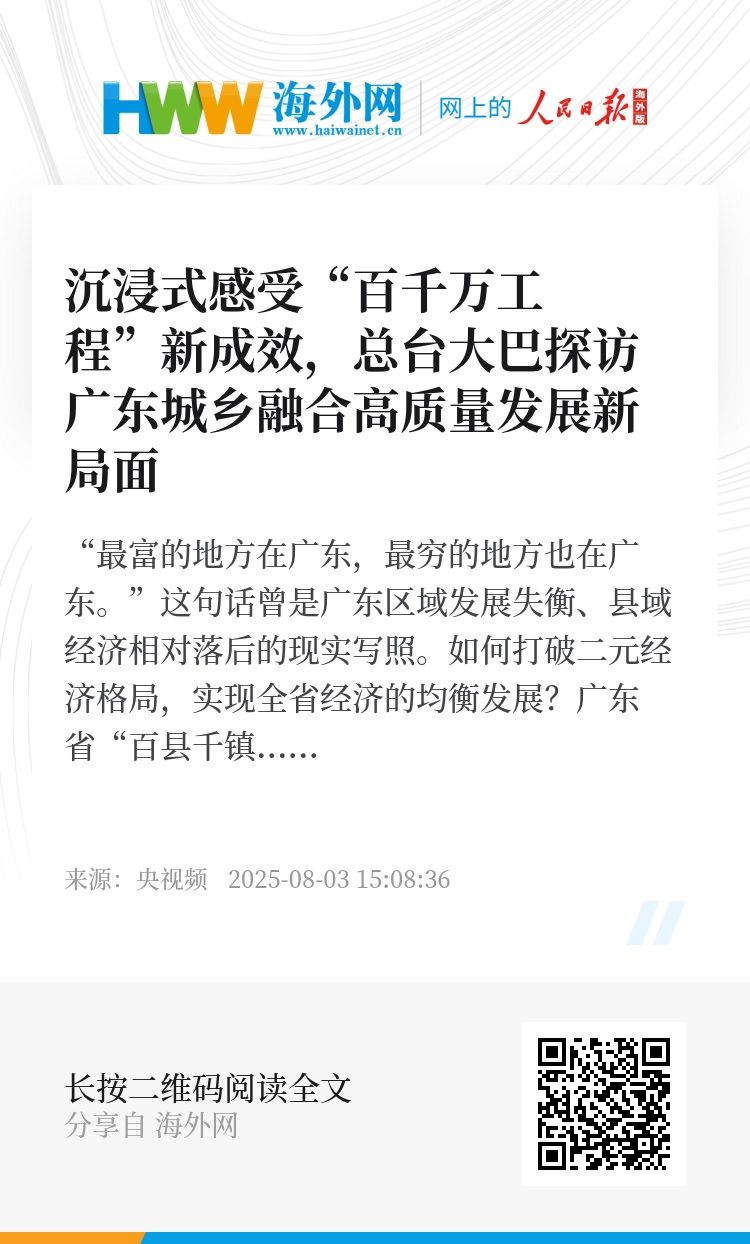《粤来粤好 奋进广东“百千万工程”》不仅是广东“百千万工程”三年实践的精彩缩影,更折射出中国城乡融合发展的澎湃活力。从县域经济的强势崛起,到镇村面貌的日新月异,从产业融合的创新突破,到城乡要素的高效流动,广东以扎实的行动破解着区域发展不平衡的难题。这不仅是对党的二十届三中全会“城乡融合发展是中国式现代化的必然要求”这一论断的生动践行,更以可复制、可推广的 “广东经验”,为全国范围内推进城乡区域协调发展提供了宝贵启示。