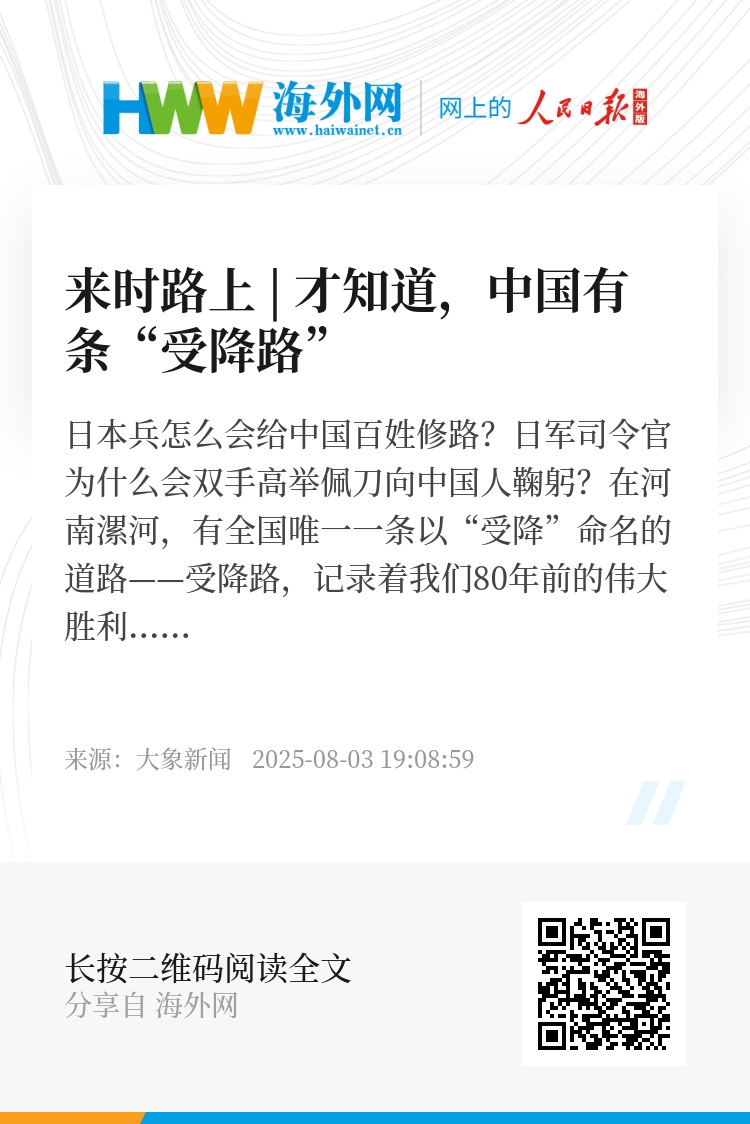 日本兵怎么会给中国百姓修路?日军司令官为什么会双手高举佩刀向中国人鞠躬?在河南漯河,有全国唯一一条以“受降”命名的道路——受降路,记录着我们80年前的伟大胜利。