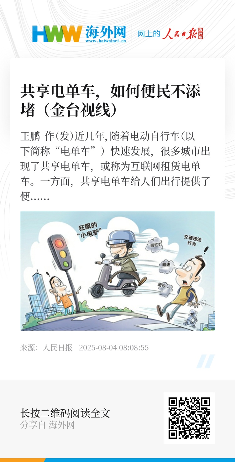 此外,还有人提出,共享电单车骑行不规范影响交通安全。陕西西咸新区读者郭先生说,多次发现仅限单人骑行的共享电单车两人甚至3人同乘,有交通安全隐患。安徽六安市读者汪云寿表示,外出时看到骑乘电单车的年轻人没有佩戴头盔,甚至一手撑伞一手握把骑行,很不安全。