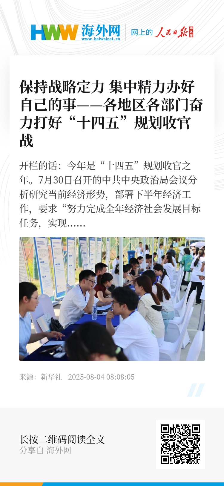 今年是“十四五”规划收官之年。7月30日召开的中共中央政治局会议分析研究当前经济形势,部署下半年经济工作,要求“努力完成全年经济社会发展目标任务,实现‘十四五’圆满收官”。一年过半,保持定力、迎难而上,集中精力办好自己的事,牢牢把握发展主动权,尤为重要。