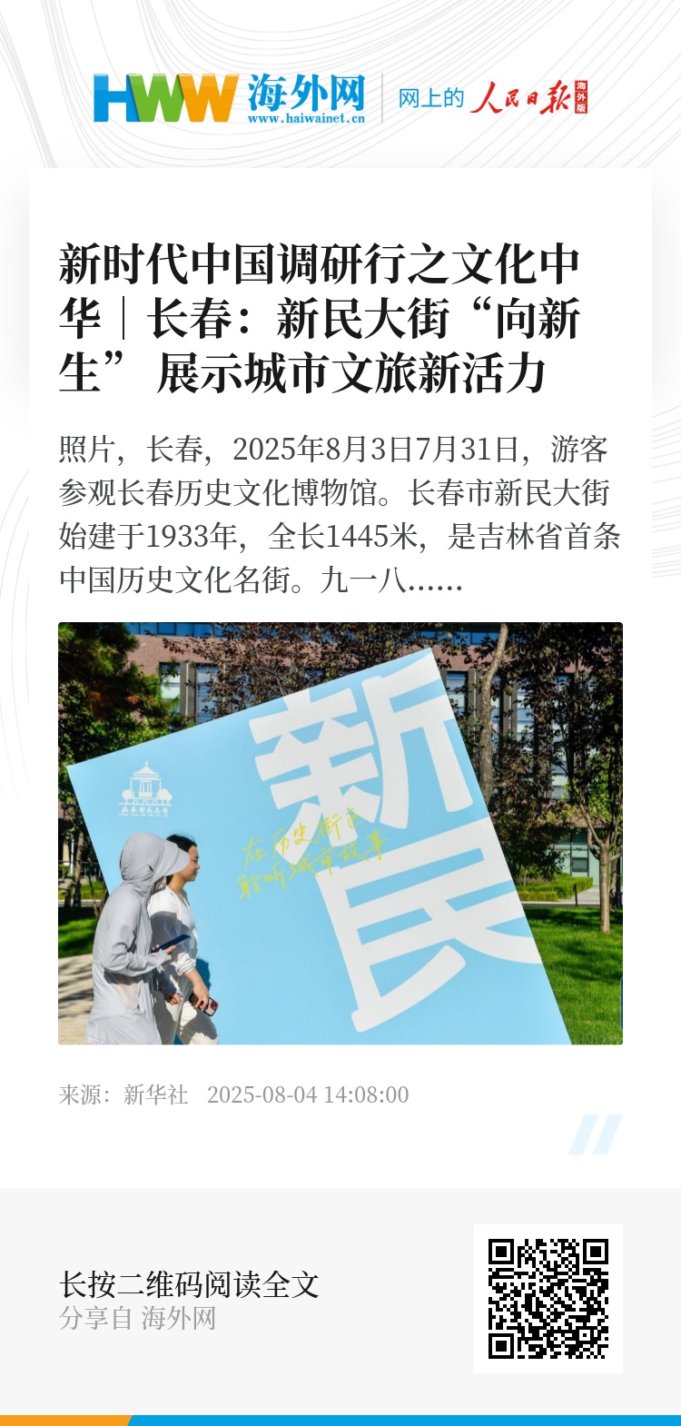 2025年7月5日,全面升级后的新民大街开街迎客。13处院落围墙被打开,释放出4.5公顷空间重归城市,并沿街打造了13处造型别致的口袋公园供人休憩。历史建筑陆续开放,让人们有机会走近历史、触摸历史、感知历史。
