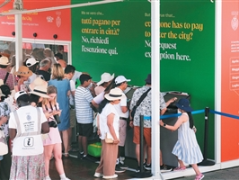 游客在意大利威尼斯的一个进城费问讯处获取通行二维码。