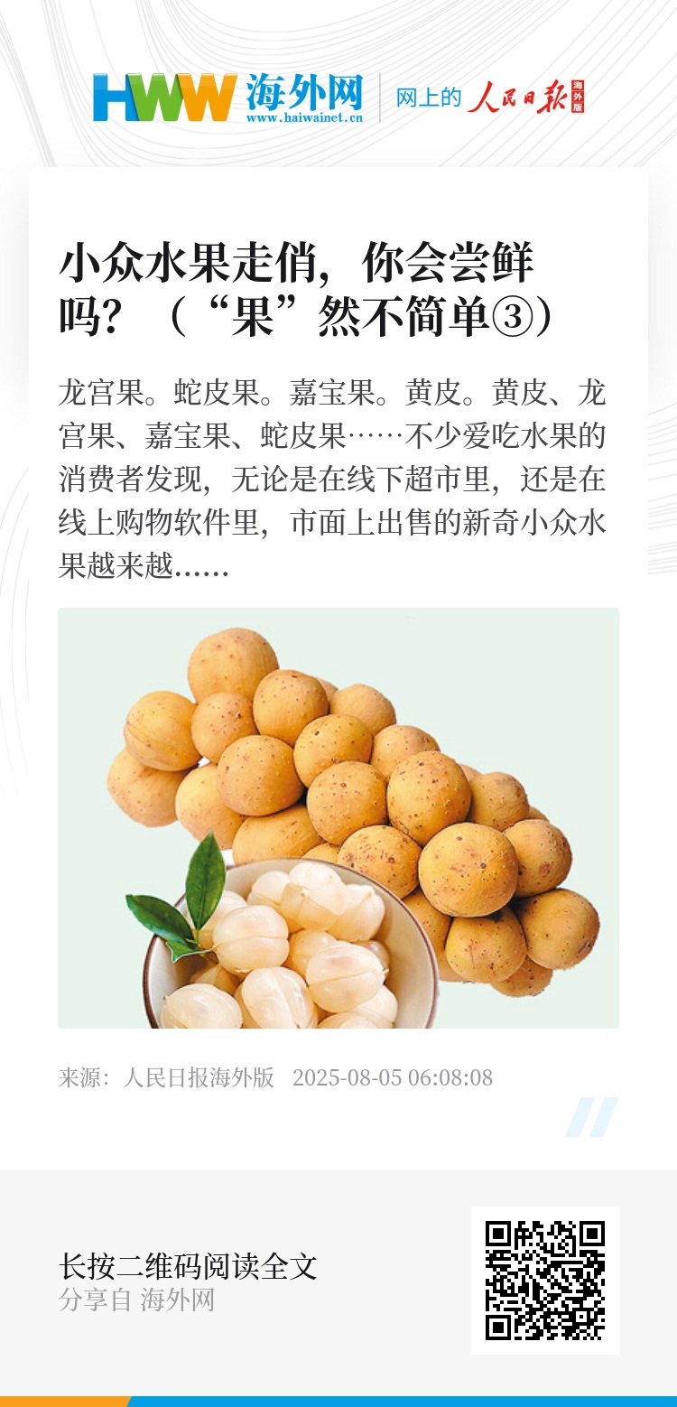 黄皮、龙宫果、嘉宝果、蛇皮果……不少爱吃水果的消费者发现,无论是在线下超市里,还是在线上购物软件里,市面上出售的新奇小众水果越来越多了。这些水果味道咋样?买的人多吗?种起来难吗?……关于这些问题,记者采访了相关业内人士。