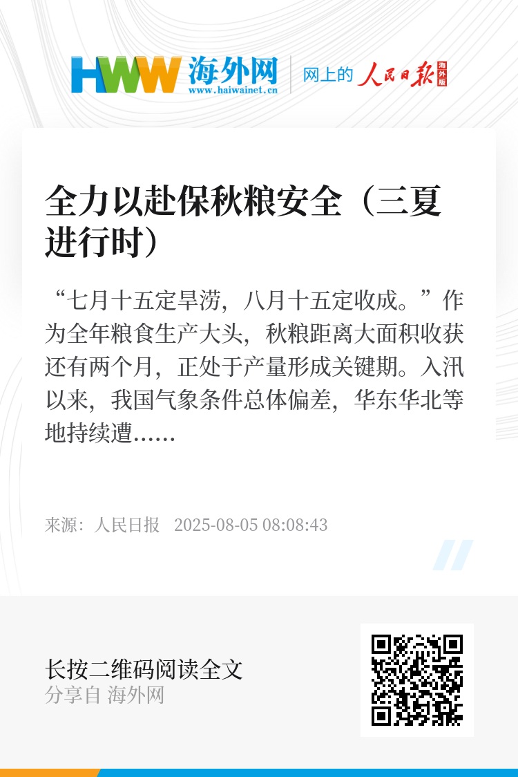 应对不利影响,各地各部门绷紧抗灾夺丰收这根弦,落实落细各项措施,全力以赴保秋粮安全。