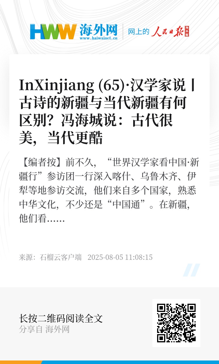 前不久,“世界汉学家看中国·新疆行”参访团一行深入喀什、乌鲁木齐、伊犁等地参访交流,他们来自多个国家,熟悉中华文化,不少还是“中国通”。在新疆,他们看到了什么?有何种感受?即日起,《InXinjiang》栏目策划推出《汉学家说》专题系列报道,还原这批汉学家的新疆之行。