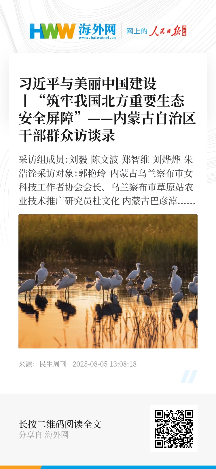 原标题:《“筑牢我国北方重要生态安全屏障”——内蒙古自治区干部群众访谈录》