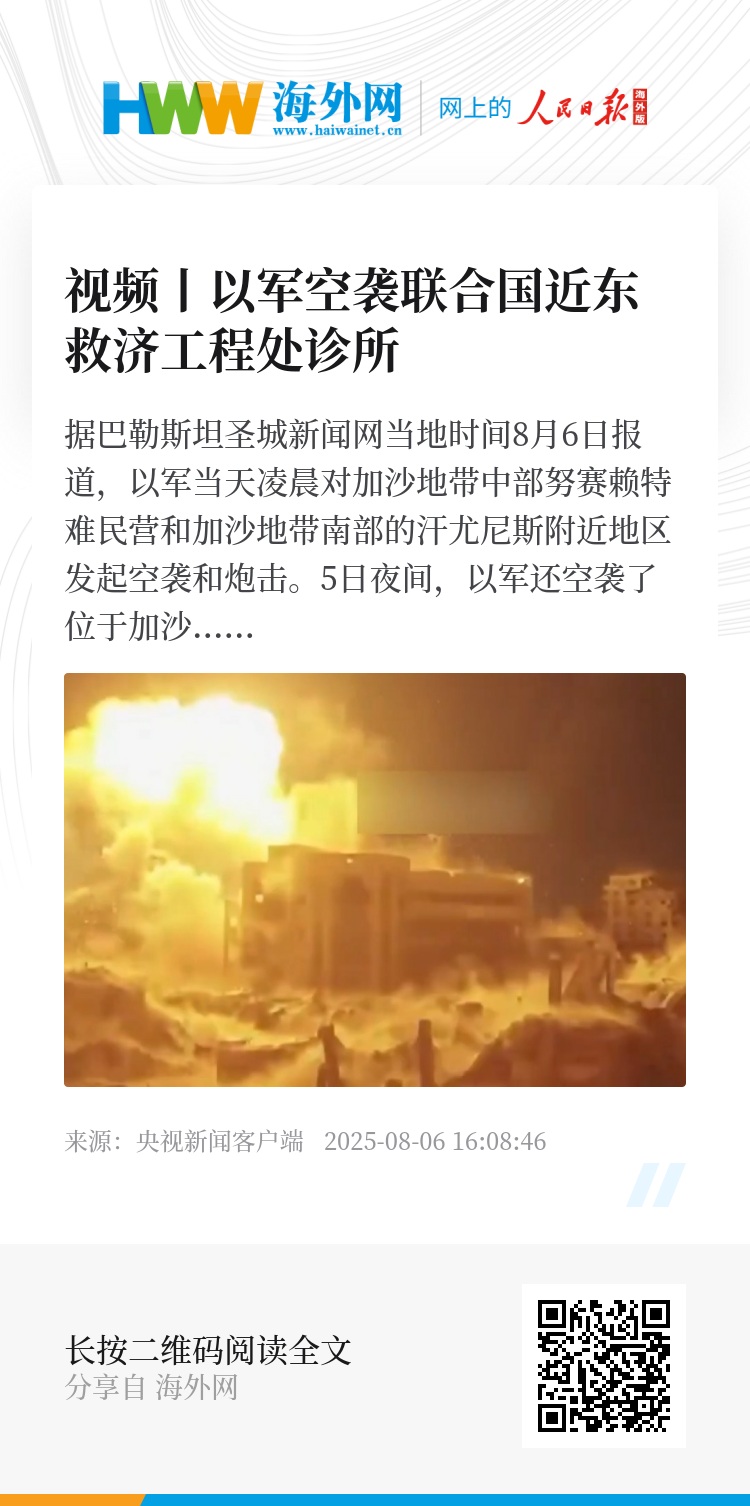 据巴勒斯坦圣城新闻网当地时间8月6日报道,以军当天凌晨对加沙地带中部努赛赖特难民营和加沙地带南部的汗尤尼斯附近地区发起空袭和炮击。5日夜间,以军还空袭了位于加沙地带北部加沙城的联合国近东巴勒斯坦难民救济和工程处(近东救济工程处)运营的一家诊所。