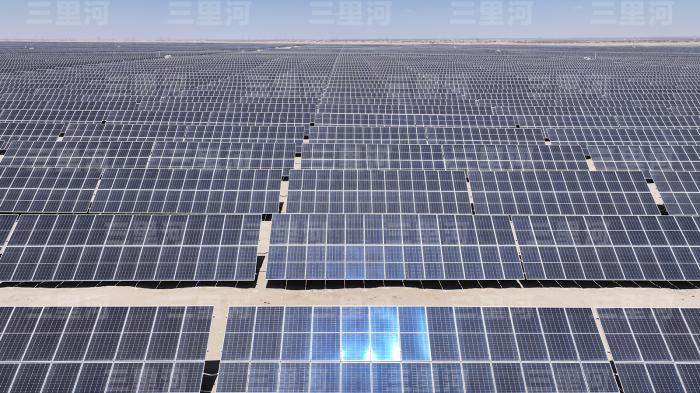 青海油田100万千瓦光伏电站。(无人机照片)图/中新社记者 马铭言 摄