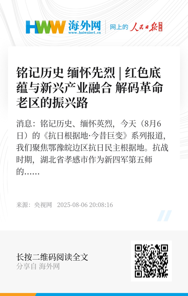 央视网消息:铭记历史、缅怀英烈,今天(8月6日)的《抗日根据地·今昔巨变》系列报道,我们聚焦鄂豫皖边区抗日民主根据地。抗战时期,湖北省孝感市作为新四军第五师的抗战指挥中枢和鄂豫边区抗日民主根据地的重要后勤基地,成为华中地区抗战的中坚力量。党的十八大以来,孝感市因地制宜发展特色农业,振兴乡村,同时利用区位优势,抢抓机遇发展传感器产业,融入湖北省万亿级光电子信息产业集群。下面,我们一起走进湖北省孝感市,感受这里的新活力。