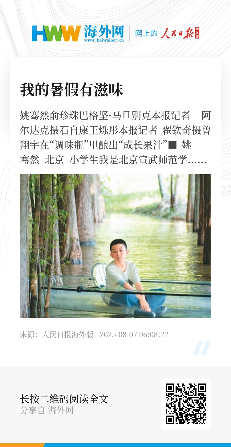 多姿多彩的暑期生活,学习仍是主线。下学期,我将步入九年级,进入初中阶段的最后一年。暑假期间,我坚持温习功课、预习新内容,每天保持阅读。我要努力学习、全面成长,谱写出自己的青春之歌!(记者 郑智文采访整理)