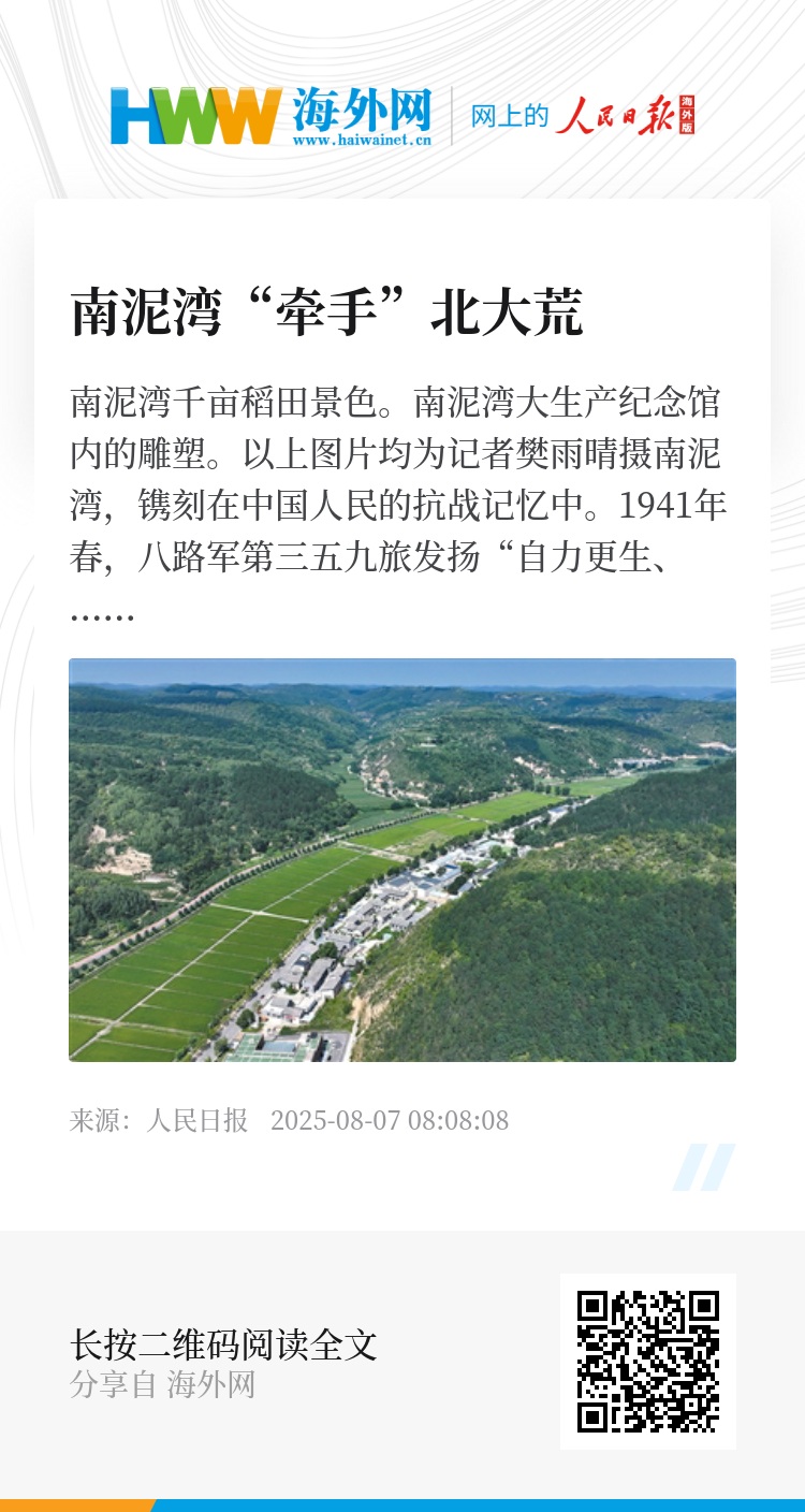 今年是中国人民抗日战争暨世界反法西斯战争胜利80周年。近日,记者走进陕西延安,探访南泥湾的新模样,看北大荒的农业技术如何在南泥湾扎根推广。