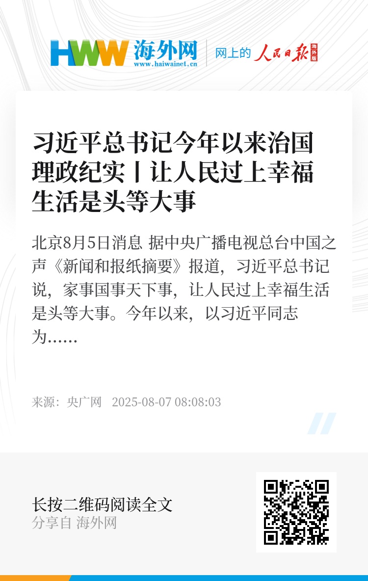 央广网北京8月5日消息 据中央广播电视总台中国之声《新闻和报纸摘要》报道,习近平总书记说,家事国事天下事,让人民过上幸福生活是头等大事。今年以来,以习近平同志为核心的党中央坚持以人民为中心的发展思想,高度重视保障和改善民生工作,加强基础性、普惠性、兜底性民生建设,着力解决群众急难愁盼问题,推动高质量发展、创造高品质生活,不断增强人民群众的获得感、幸福感和安全感。