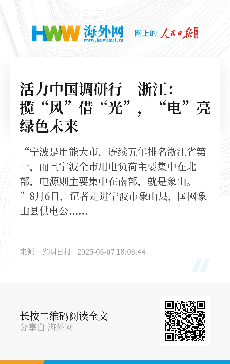 “看,这是昨天新能源发电与全社会负荷曲线,我们可以直观地看到,10:00-15:00之间新能源发电曲线在全社会曲线之上,这就是所谓‘全绿电’时段。”杨鑫宇介绍,2025年上半年,象山县有124天存在新能源发电大于全社会负荷的情况,占比超2/3,可满足象山县以及隔壁宁海县的用电需求,“在这些时刻,象山真正意义上实现了县域全绿电供应,用的每一度电都是绿色可再生的。”