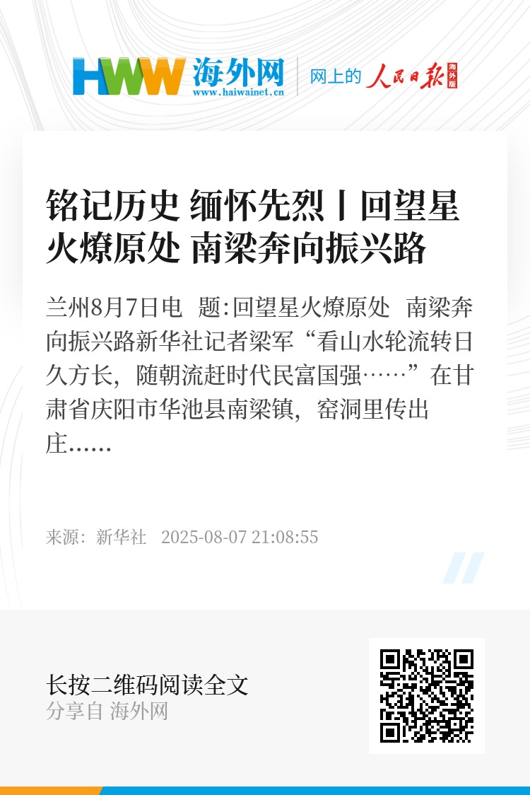 新华社兰州8月7日电 题:回望星火燎原处 南梁奔向振兴路