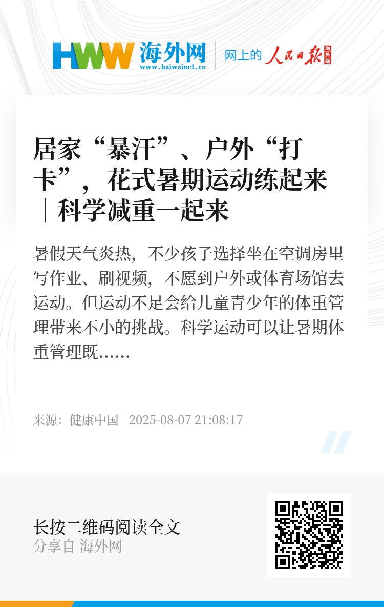 暑假天气炎热,不少孩子选择坐在空调房里写作业、刷视频,不愿到户外或体育场馆去运动。但运动不足会给儿童青少年的体重管理带来不小的挑战。
