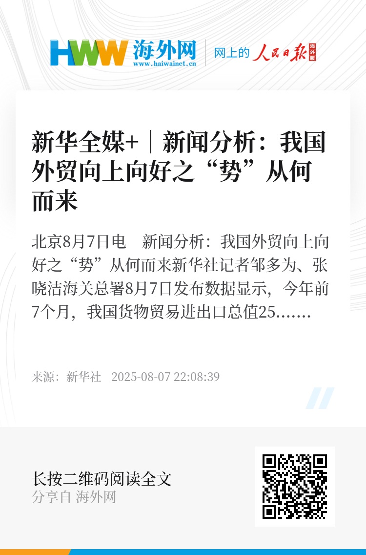 新华社北京8月7日电 新闻分析:我国外贸向上向好之“势”从何而来