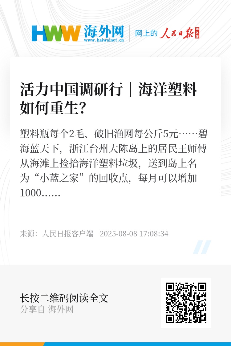 从环卫工人到渔民和岛民……如今在台州,参与到“蓝色循环”项目的人越来越多。一位渔民说,项目给让他们增收,出海时会有意识打捞一些废弃渔具、塑料瓶,送到回收站点。
