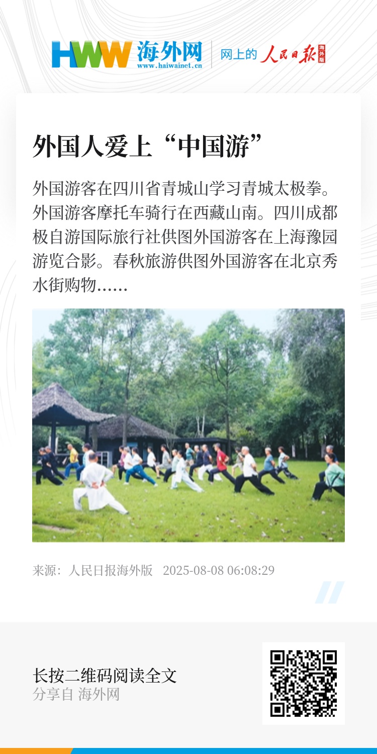 四川成都极自游国际旅行社总经理廖仲强告诉记者:“现在外国游客在华旅游目的地选择更多样,体验内容更丰富。我们接待的欧洲游客深入阿坝藏族羌族自治州的壤塘县了解当地文化,体验壤巴拉觉囊唐卡彩绘;走进甘孜藏族自治州塔公草原牧民家庭,了解牧民的生产生活,身穿藏族服饰,品尝酥油茶,体验挤牦牛奶,在草原徒步骑马。”