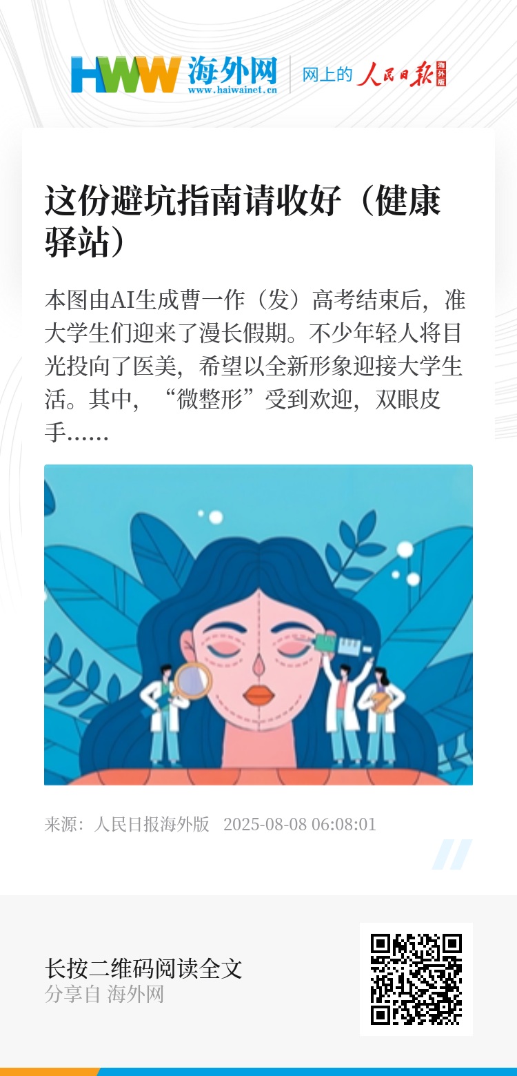 相比之下,辽宁的准大学生王梓惟显得更为谨慎。“(做医美)完全可以理解,但也要承担相应的风险。”王梓惟说,看过一些失败案例后,他对医美手术心存畏惧,“追求美丽不应以伤害身体为代价,关键在于把握分寸,年轻人还是不要过早尝试医美项目。”