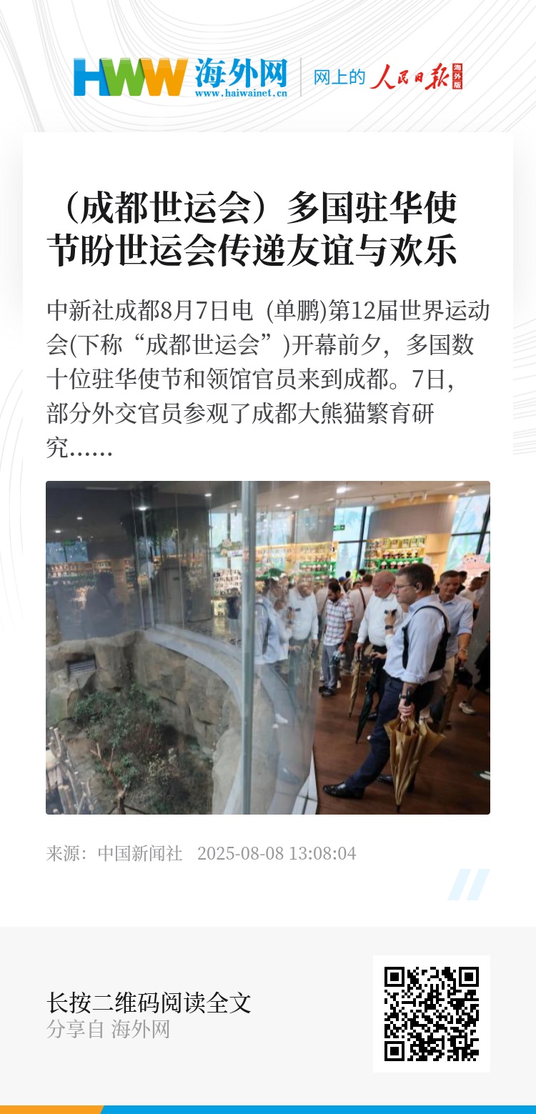 “观赏大熊猫令人心情愉悦,它们不仅是赛事吉祥物,更是连接运动员与观众的情感纽带。”爱沙尼亚驻华大使馆副馆长、公使马涛(Marti Matas)表示,大熊猫将为成都世运会留下独特记忆。