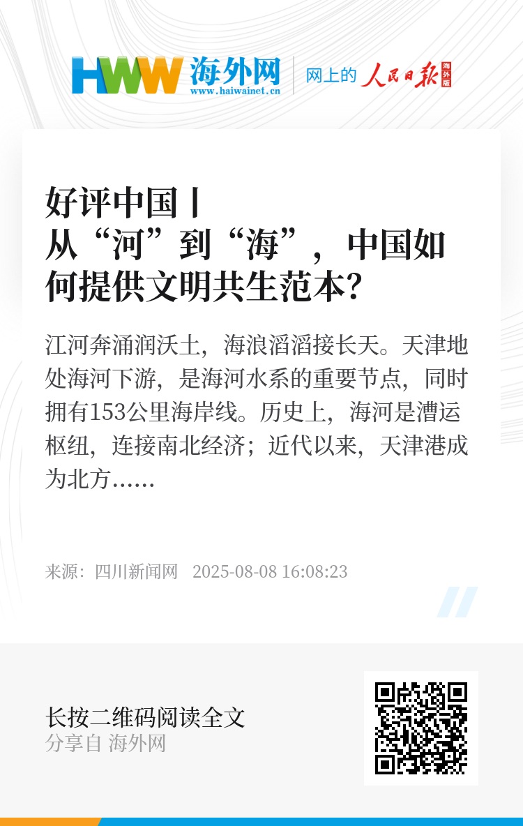 从“河”到“海”的跨越,本质上是中国文明处理人与自然关系的生动实践。天津的故事告诉世界,城市的生命力在于既能扎根脚下土地,又能拥抱星辰大海;文明的韧性在于既能守护历史文脉,又能创造未来图景。这条从“河”到“海”的道路,或许正是中国在城市化进程中贡献给世界的独特智慧——它不追求千城一面的摩天大楼,而是让每座城市都能在传统与现代的对话中,找到属于自己的生命律动,让文明的长河奔涌不息,让发展的海洋碧波万顷。