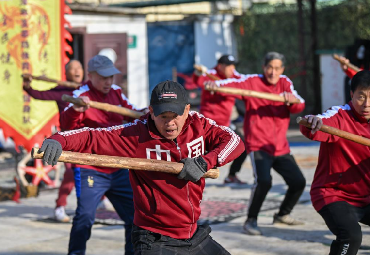 天津大爷们在天津王串场体育公园做操。新华社记者 孙凡越 摄