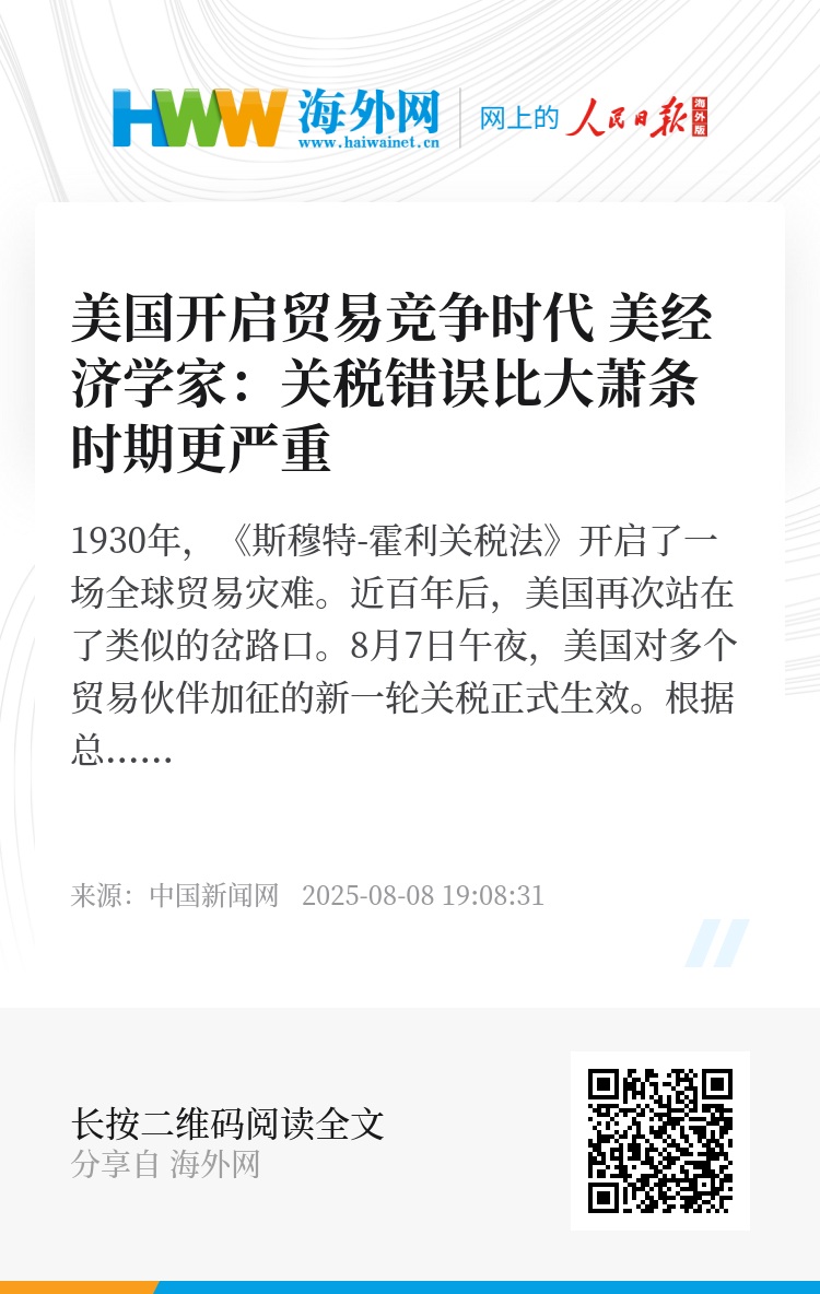 近期,三里河就新一轮加征关税采访了多名美国经济学家。他们普遍认为,特朗普所犯的错误,比当年的《斯穆特-霍利关税法》有过之而无不及。在他们看来,没有人能在贸易战中真正胜出。