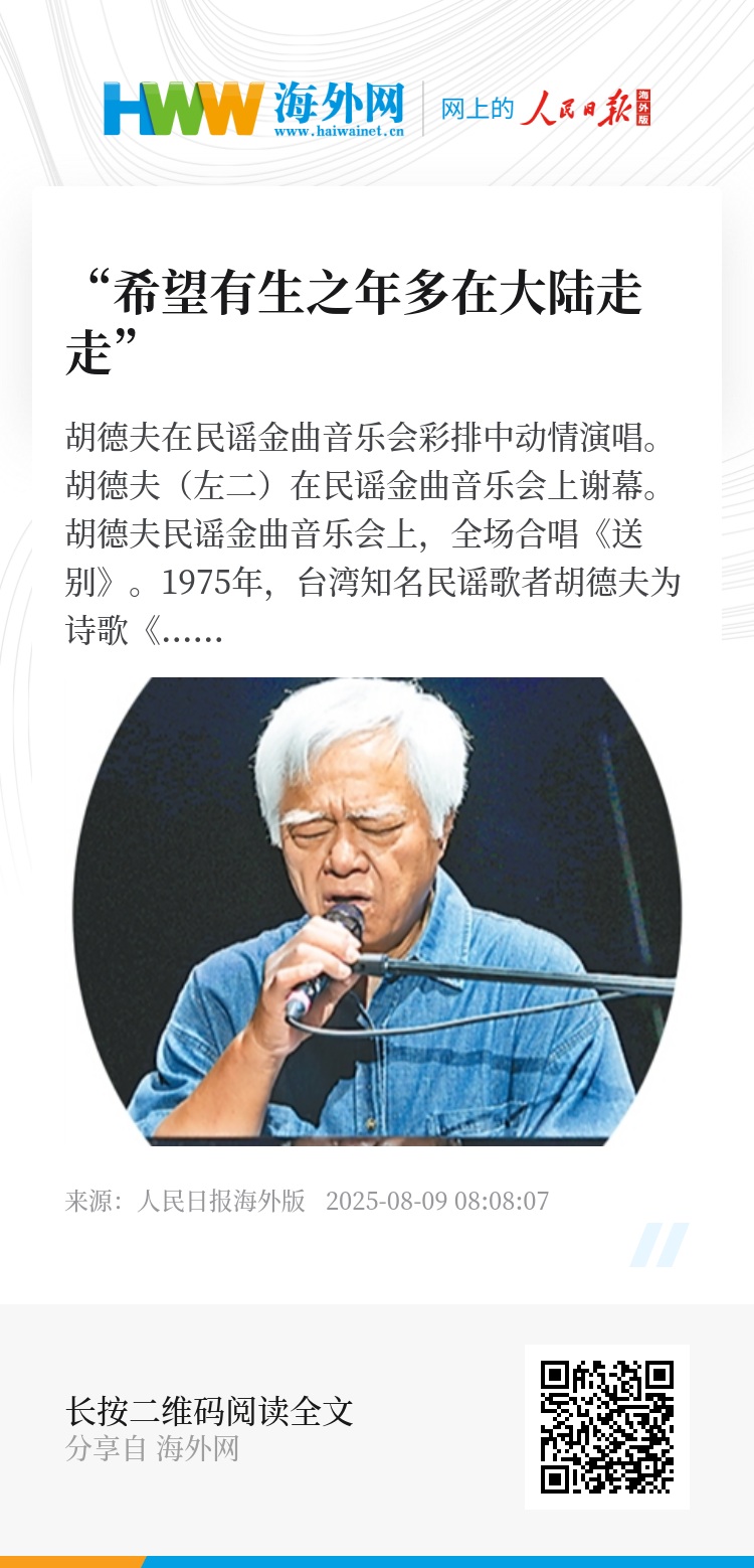 “大陆何其大,民族何其多,是很丰沛的民歌土壤。”胡德夫说,他最大的愿望是有生之年多在大陆走走,跟不同世代的年轻人交谈,听他们的歌,唱自己的歌。“希望年轻人能从我的歌里得到一些力量、一些共情的联结。”他说。