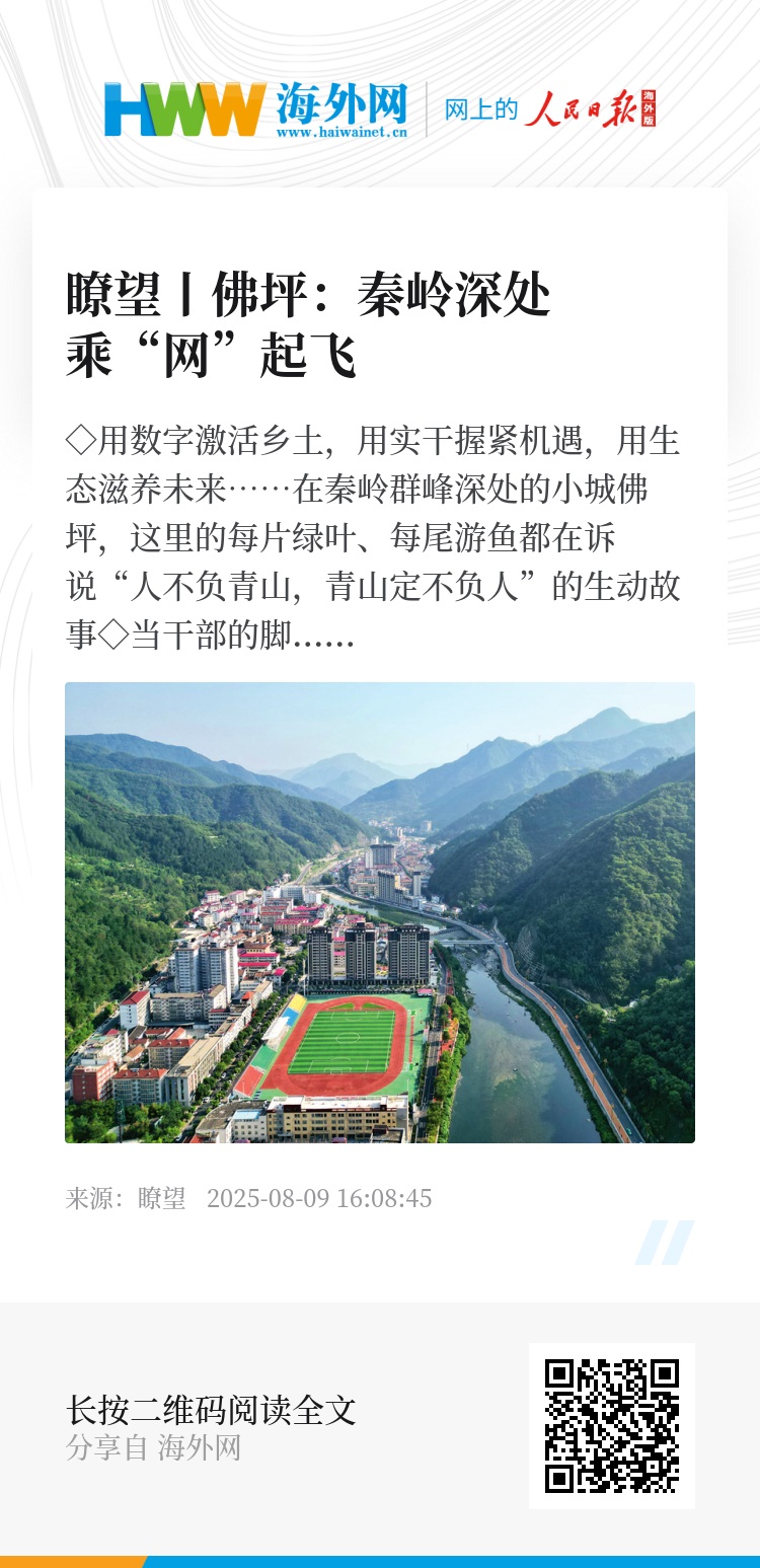 ◇用数字激活乡土,用实干握紧机遇,用生态滋养未来……在秦岭群峰深处的小城佛坪,这里的每片绿叶、每尾游鱼都在诉说“人不负青山,青山定不负人”的生动故事