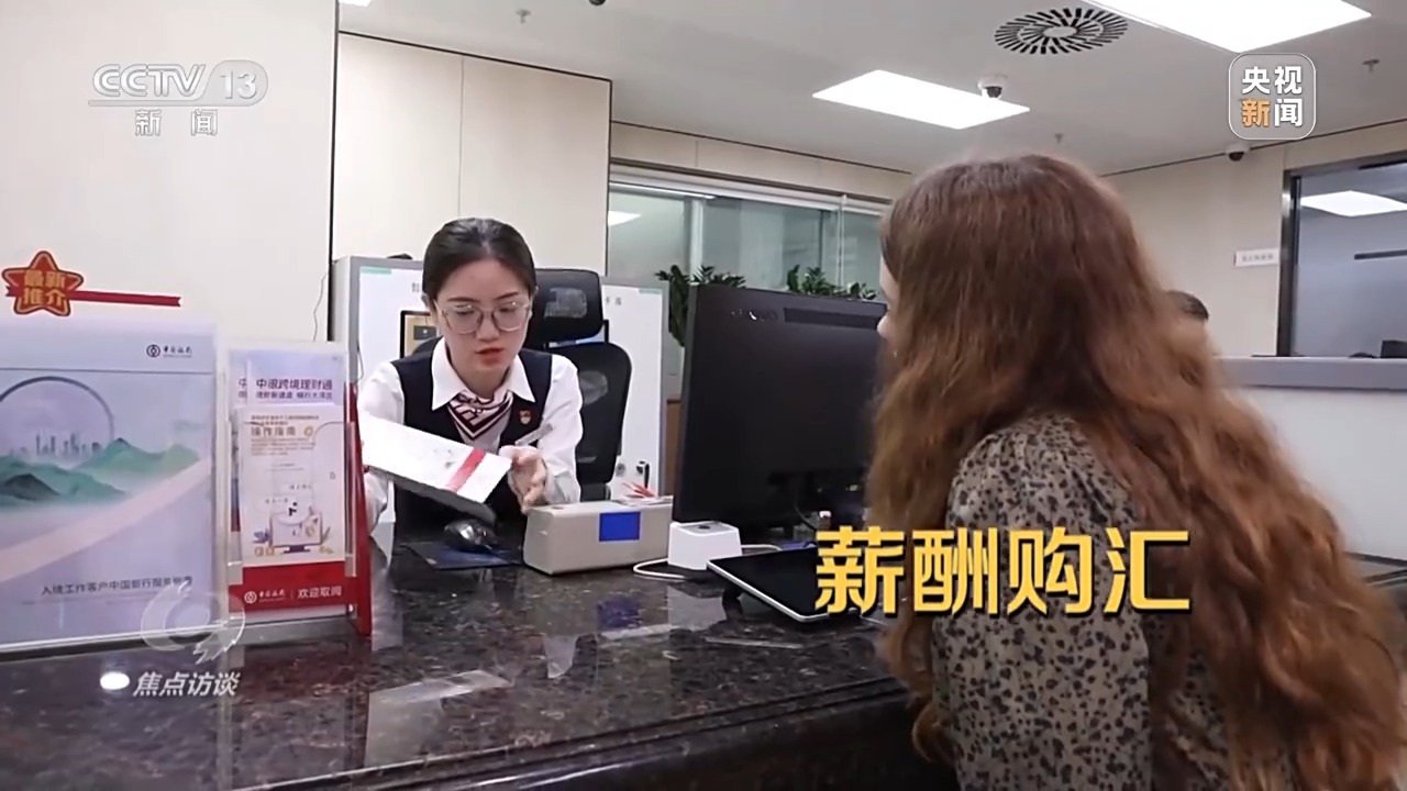 玛丽娜在深圳工作,这天,她到当地的一家银行办理“薪酬购汇”业务,工作人员审核了相关材料后,她就能在手机银行上将工资兑换为外汇,转给国外的家人。而此前,玛丽娜每个月汇款都要带着厚厚的一沓材料到银行来办理。