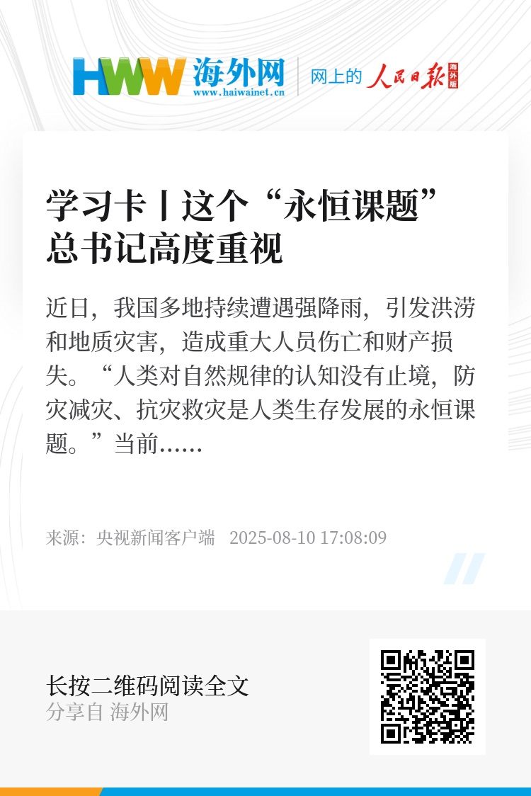 “人类对自然规律的认知没有止境,防灾减灾、抗灾救灾是人类生存发展的永恒课题。”