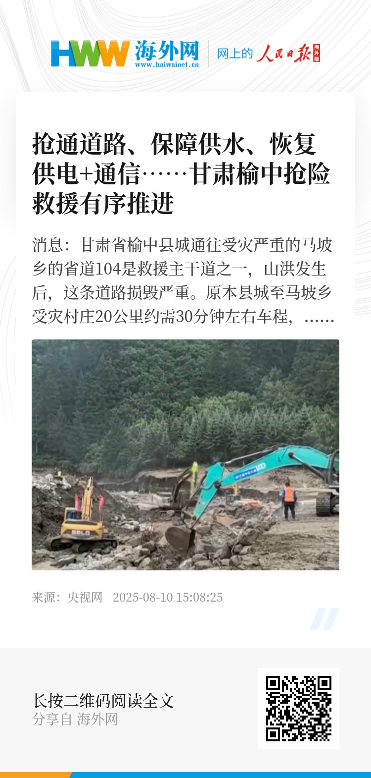 8月9日晚,从甘肃兰州榆中县城前往兴隆山的省道104线道路抢通工作继续进行,截至10日零时,未打通路段仅剩1.5公里。来看总台中国之声记者江晓晨9日发回的报道。
