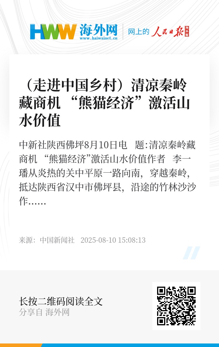 中新社陕西佛坪8月10日电 题:清凉秦岭藏商机 “熊猫经济”激活山水价值
