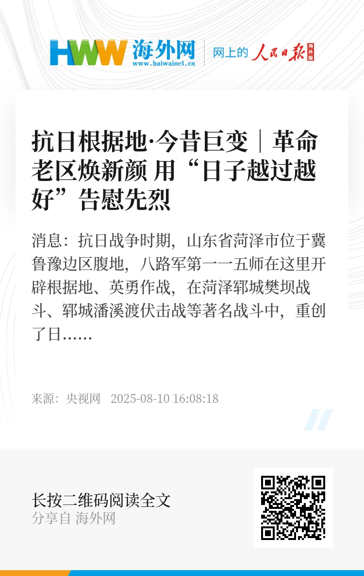 80多年来革命老区菏泽发生了翻天覆地的变化。2024年,菏泽全市生产总值达到4803亿元,由过去的山东省垫底跃居到全省中游。菏泽全市城乡居民人均可支配收入快速增长,多年来持续位居山东省前列。过去十年,菏泽成为山东省发展速度最快、综合实力提升最明显的地市之一。现在的菏泽,产业发展、城市功能、文化建设、民生保障都发生了翻天覆地的变化。让革命老区群众的日子越过越好,这就是对革命前辈们最好的告慰。