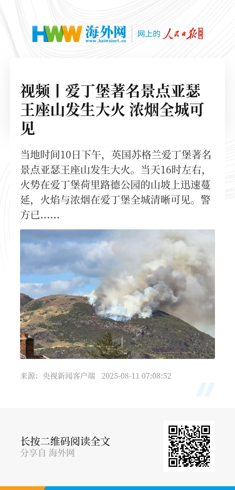 当地时间10日下午,英国苏格兰爱丁堡著名景点亚瑟王座山发生大火。当天16时左右,火势在爱丁堡荷里路德公园的山坡上迅速蔓延,火焰与浓烟在爱丁堡全城清晰可见。警方已敦促民众远离该区域。