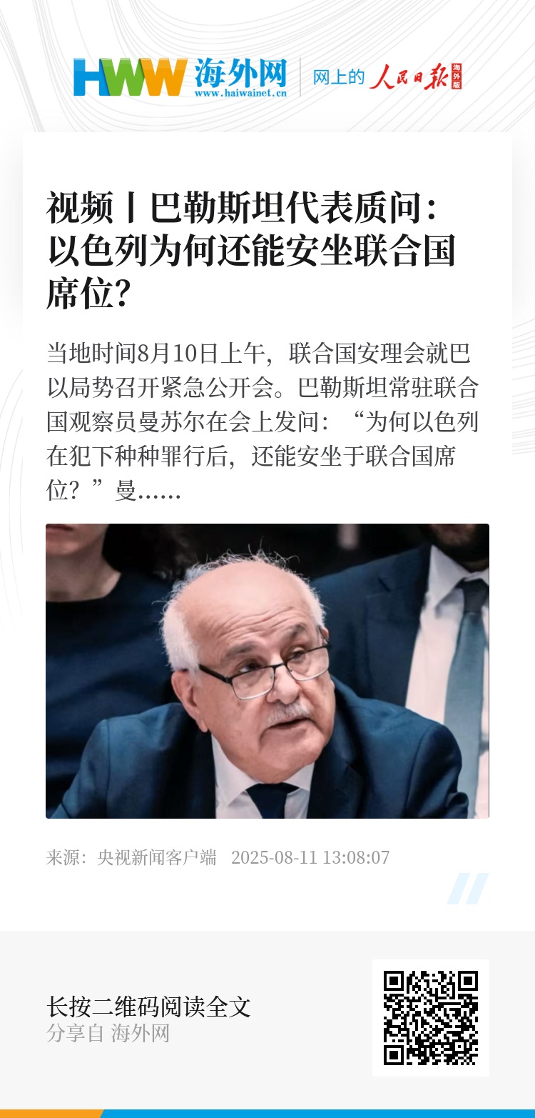 当地时间8月10日上午,联合国安理会就巴以局势召开紧急公开会。巴勒斯坦常驻联合国观察员曼苏尔在会上发问:“为何以色列在犯下种种罪行后,还能安坐于联合国席位?”