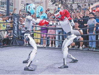连续施展侧踢、勾拳、组合拳等动作,被击倒后会迅速爬起继续战斗……在宇树科技展区,一场机器人格斗赛正在进行。“参赛选手是我们最新升级的G1格斗款人形机器人,拥有先进的动态平衡算法,在外部冲击下实时调动各个关节电机,站得更稳、起身更快。”宇树科技市场部经理廉莹莹说。