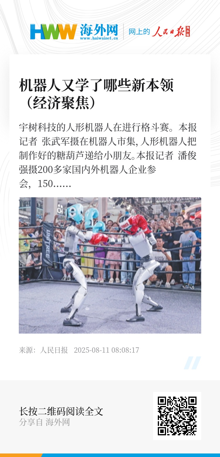 200多家国内外机器人企业参会,1500余件展品亮相,100余款新品首发首秀……8月8日至12日,以“让机器人更智慧,让具身体更智能”为主题的2025世界机器人大会在北京举办。