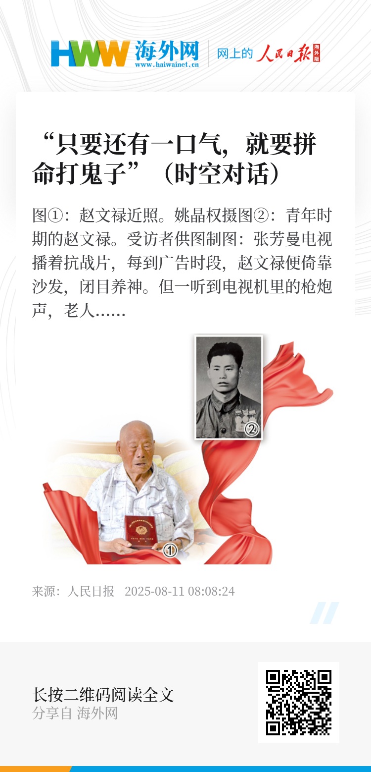 透过老人望向电视的眼神,看到他仿佛又回到当年枪林弹雨的抗日战场。那个战火纷飞的年代在他心里从未远去,也将被后人永远铭记。(本报记者 苏滨)