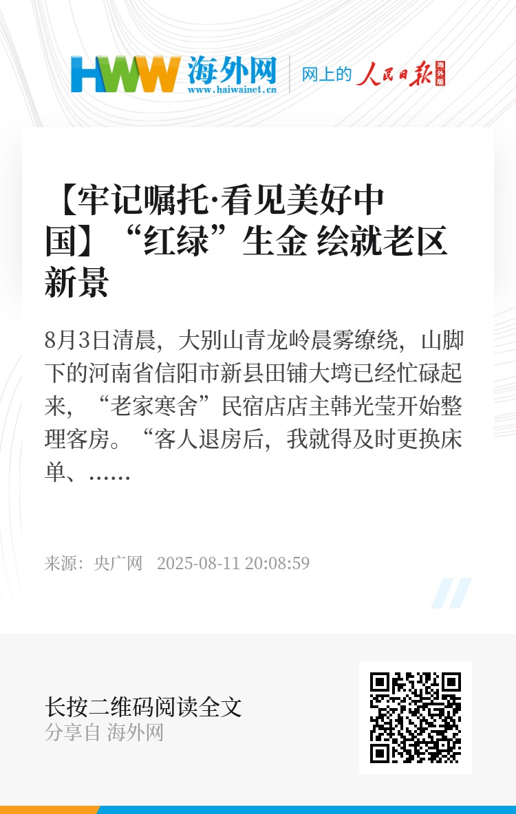 8月3日清晨,大别山青龙岭晨雾缭绕,山脚下的河南省信阳市新县田铺大塆已经忙碌起来,“老家寒舍”民宿店店主韩光莹开始整理客房。“客人退房后,我就得及时更换床单、打扫卫生,为迎接下一波游客做准备。”