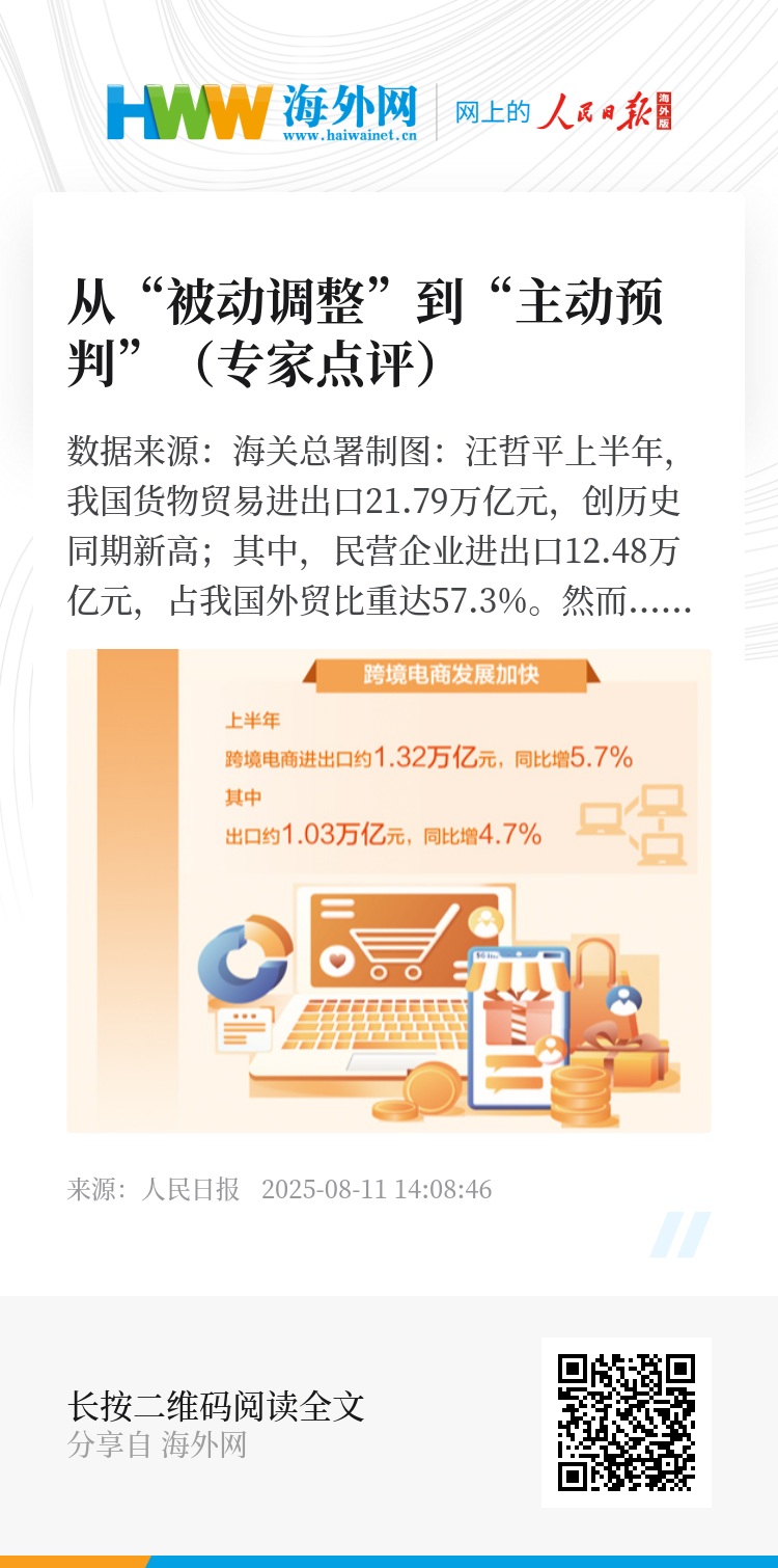 政府部门加强政策协同、完善服务体系,进一步释放跨境电商综试区的政策红利,帮助企业打通支付、物流、合规等全链条堵点。多方合力,外贸企业就能在国际市场筑牢韧性根基,实现从“规模扩张”到“质量提升”的跨越。