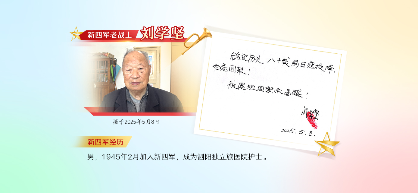 新四军经历:1940年投入抗日战争,为抗日前线征收公粮。1944年考入隶属新四军序列的中国人民抗日军政大学第五分校,成为一名新四军战士。参加了攻打阜宁北沙湾的作战、盐城战役等多场战斗,多次与敌人交火,屡次完成粮食供应任务,保障了新四军部队的补给。