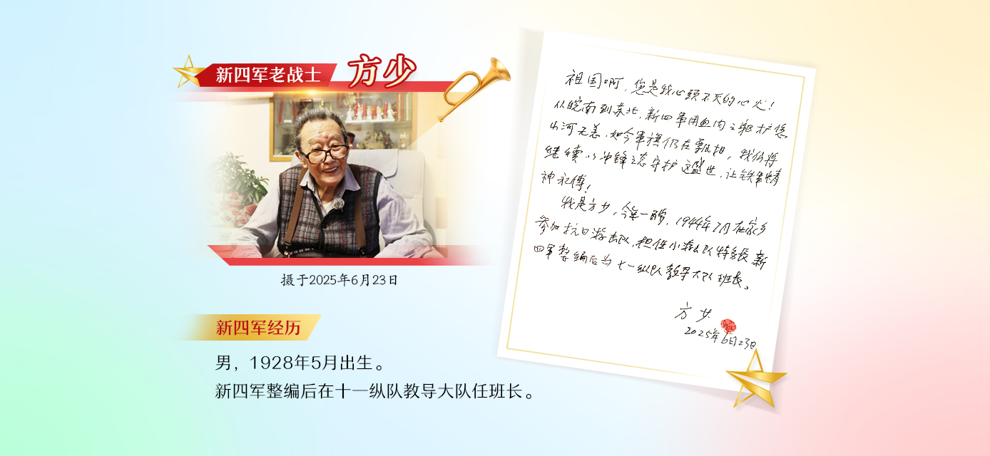 80年后,前行路上,如何从新四军的红色基因中汲取强大力量?新华日报·交汇点新闻派出多路青年记者,组团寻访80位百岁新四军老战士,重磅推出《归来仍是少年》系列融媒报道。每期由8位老战士联袂讲述,在一个个动人故事里记录历史,在一句句深情寄语里共绘未来,弘扬“初心不改,归来仍是少年”的主题精神,激励我们不断攻坚克难,书写中国式现代化建设风华正茂的新诗篇。