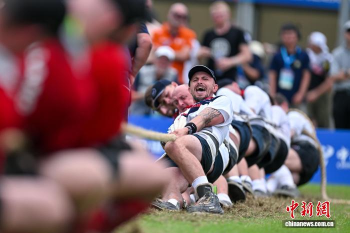 8月9日,2025年成都世运会男子室外拔河640公斤级决赛在东安湖体育公园中央广场进行,英国队胜瑞士队夺得冠军。 中新社记者 刘忠俊 摄