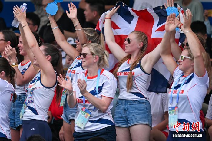 8月9日,2025年成都世运会男子室外拔河640公斤级决赛在东安湖体育公园中央广场进行,看台上观众为拔河参赛队员们加油呐喊。 中新社记者 刘忠俊 摄