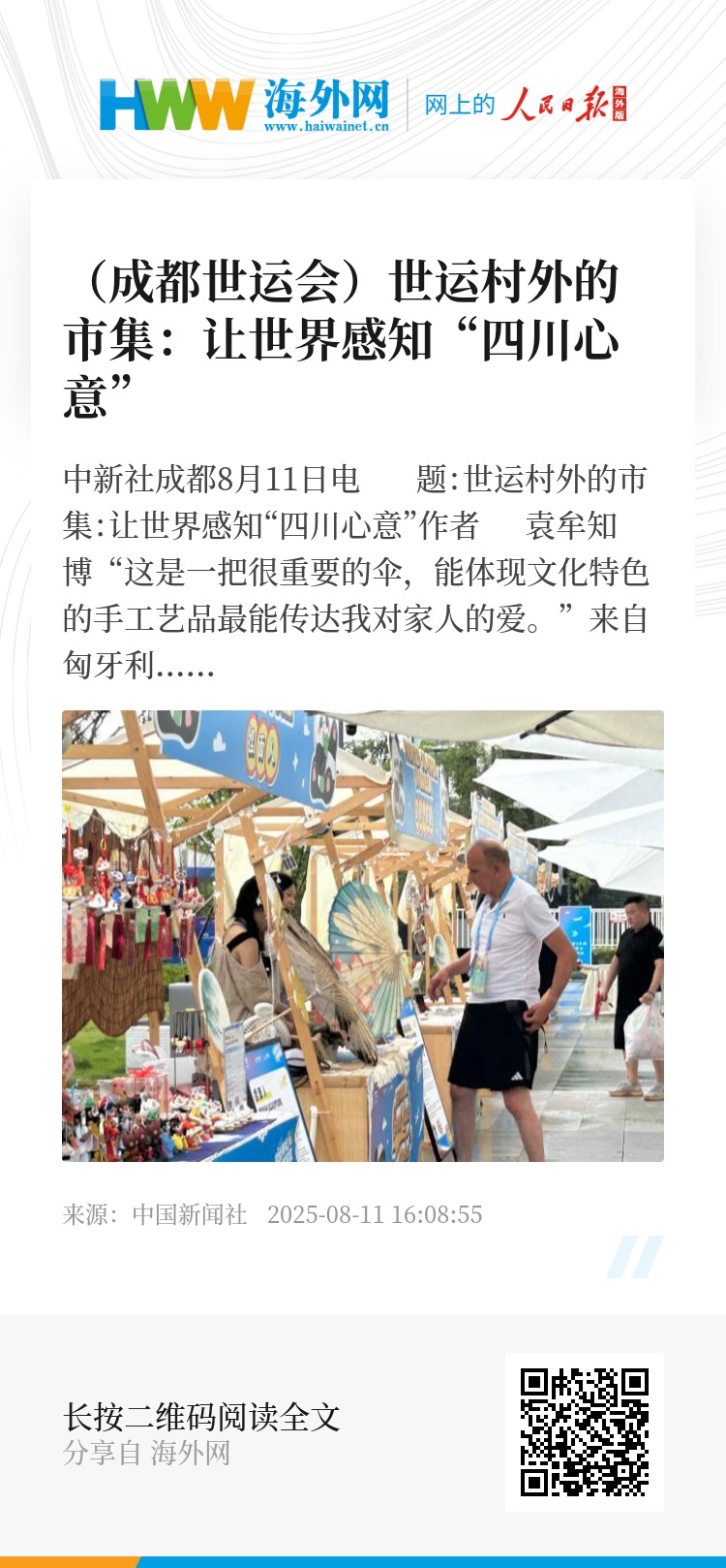 中新社成都8月11日电 题:世运村外的市集:让世界感知“四川心意”