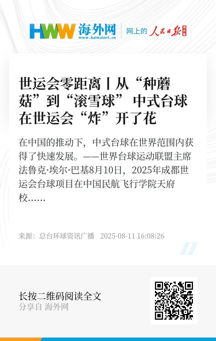 中式台球首次进入世界运动会,对于世界台球运动的进一步发展具有重要意义。世界台球运动联盟副主席、世界花式撞球协会主席肖恩·辛格在接受总台环球资讯记者采访时表示,中式台球仅用了不到四年的时间,就在全世界家喻户晓,这超乎了所有人的想象,而中式台球首次亮相世界运动会,无疑是具有历史意义的时刻。